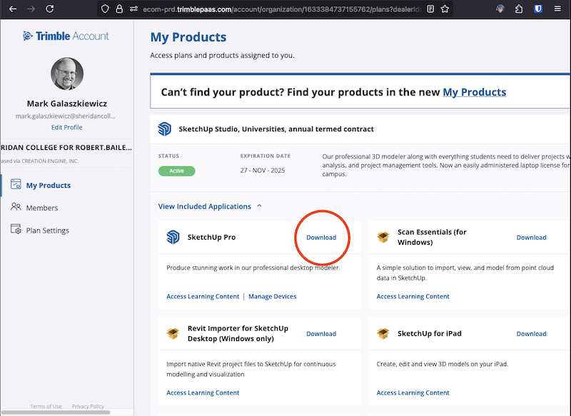 In addition to having fully licenced Sketchup on the Lab computers in the J-wing, your program has also provided you a licence to use on your home machine or laptop. Here is how you can access that licence.